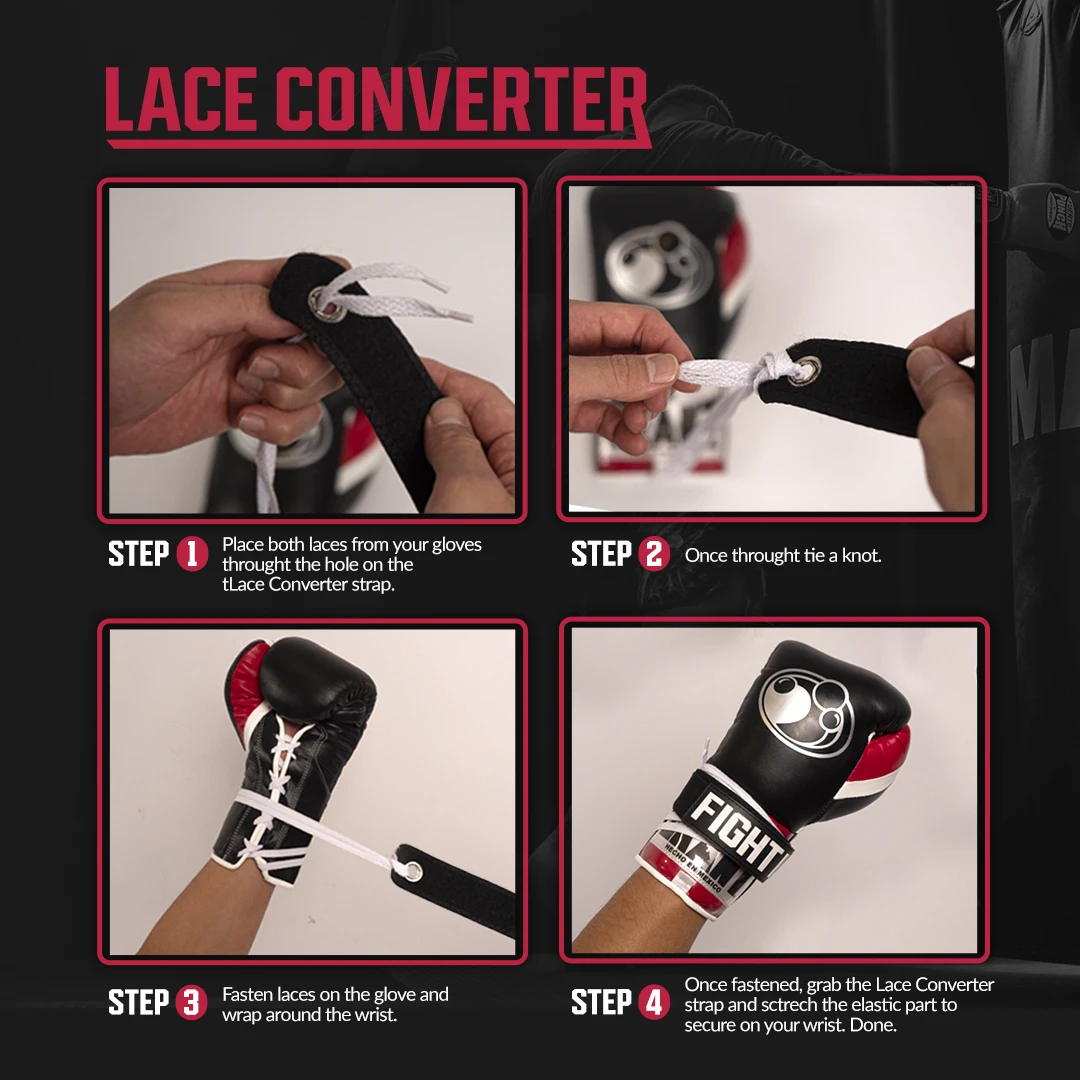 The FightHQ lace converter is designed to enable you to lace up your own boxing gloves without the assistance of others. The innovative design allows you to utilise the fit, feel & function of the laced glove with a quicker easier design.