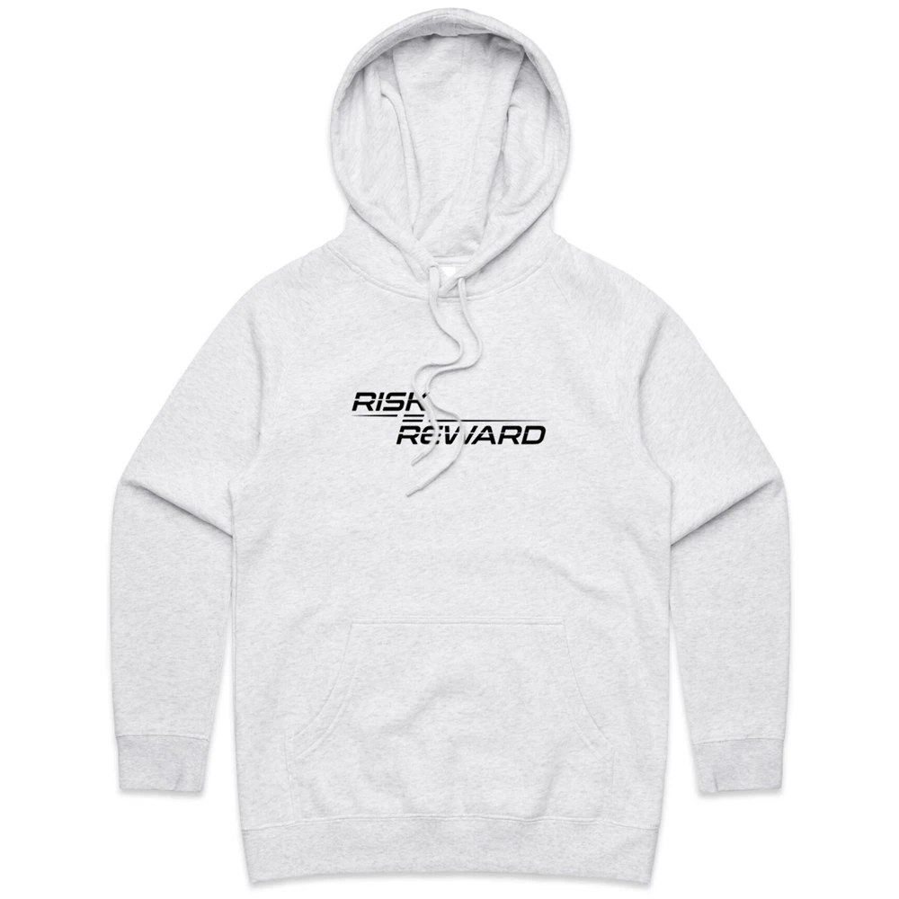 Be the first to review “Risk Equals Reward Ladies White Marle Hoodie” Cancel reply