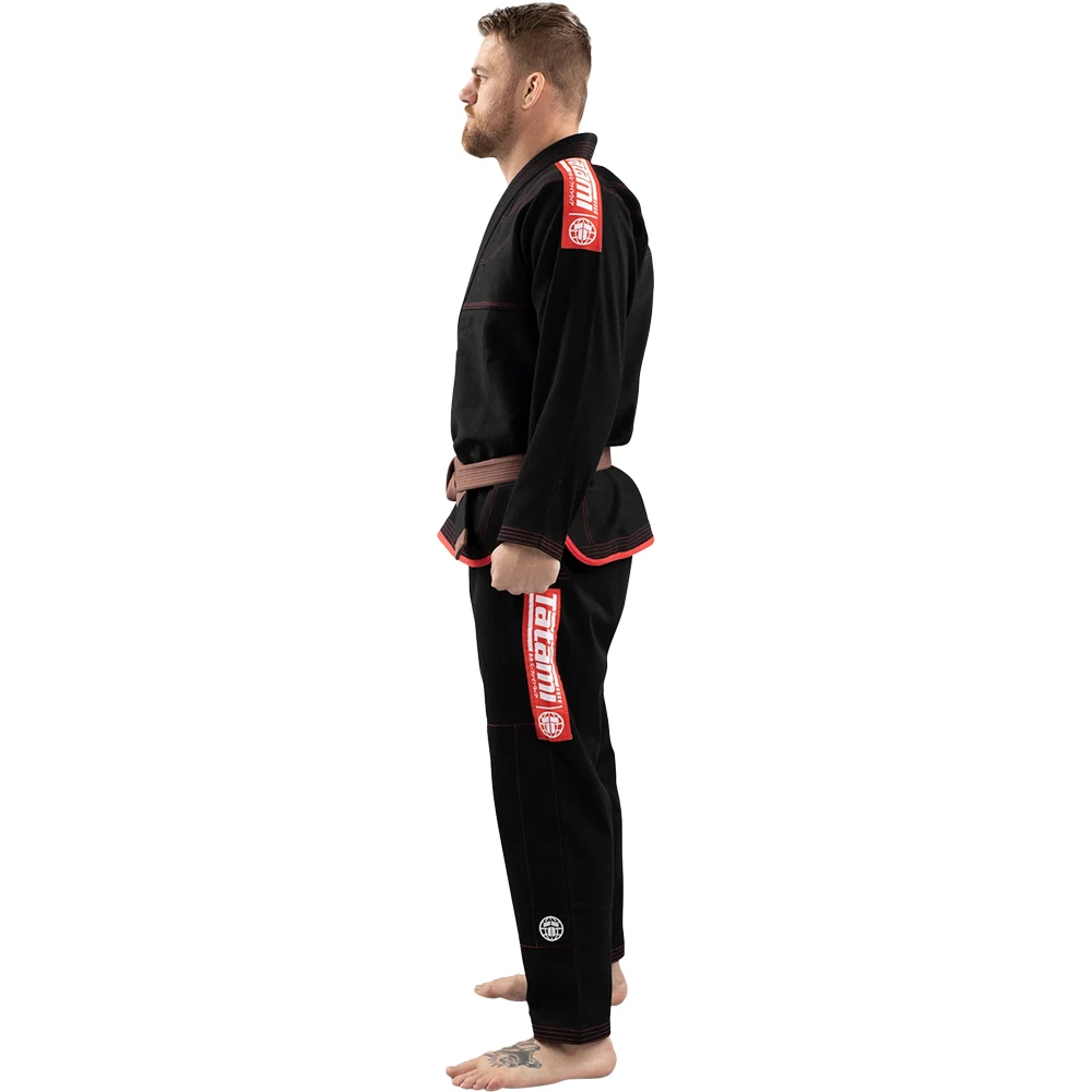- Black gi with red contrasting stitching & Tatami logos